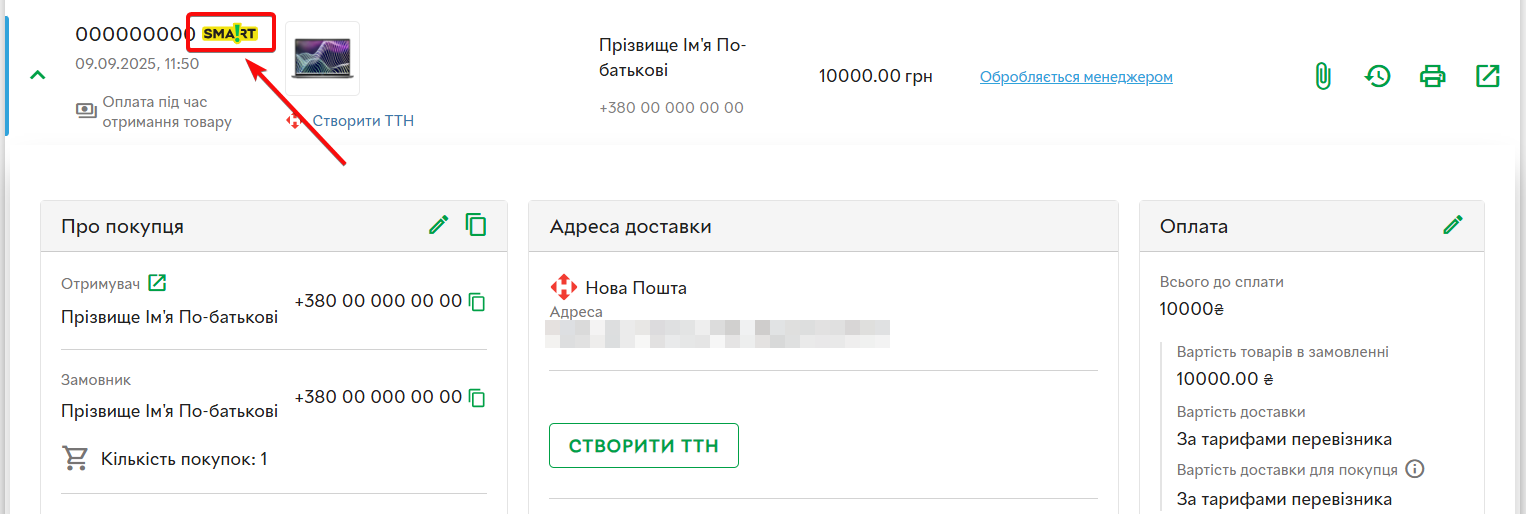 - Наразі неможливо редагувати замовлення з позначкою Smart. Якщо потрібно внести зміни в таке замовлення, скасуйте його та створіть нове.