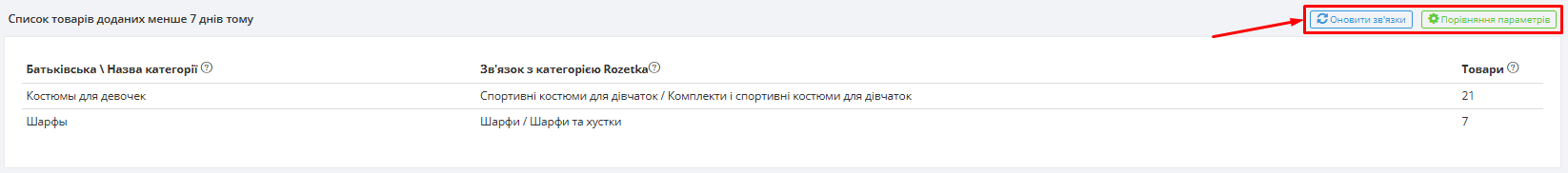 Тепер можна одразу для всіх категорій виконати дії «Оновити зв’язки» та «Порівняння параметрів»